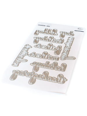 There are precut diecut pieces in your kit as well. We will be using the hello die cut from Pinkfresh Studios. It is the word hello and the shadow layer. They were diecut in white so you can use any color ink that makes you happy.