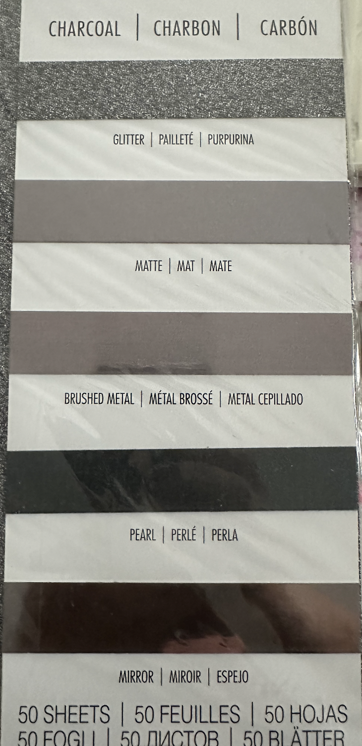 This kit is centered around the new Blossom die from Tim Holtz and is priced at $39.99. It also includes a variety of craft supplies: an embossing folder, acrylic paint, metal sheets, card bases, envelopes, and opulent paper & die cuts. The opulent paper comes in five different color palettes and we’ll be featuring the charcoal pack in this kit.
