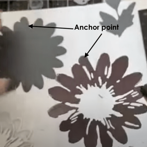The inner flower piece is two pieces with four dots as an anchor point. one dot on top and three across the middle. For the leaves, use the stem as your anchor point.