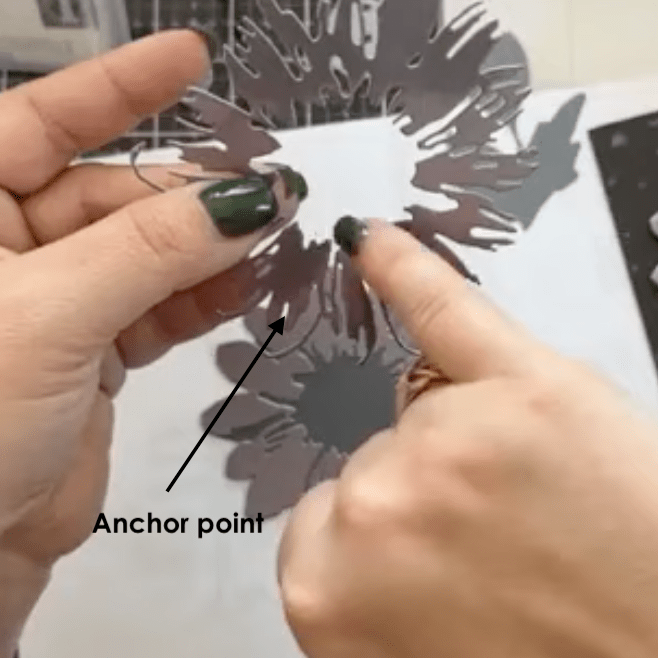 Once all your pieces are cut, it’s time to start layering your flower. Because this is not a colorize die, there are no indentations on where to glue each layer so we need to find an anchor point for each step.